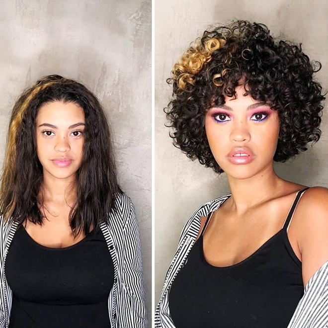 Mái tóc xoăn xù mang lại vẻ đẹp quyến rũ, pha lẫn chút hoang dại cho phái đẹp. Tuy nhiên, chăm sóc tóc xoăn khá kỳ công vì nếu tóc bị rối, không vào nếp sẽ khiến bạn mất điểm. Khi diện tóc xoăn, các cô gái nên tránh gội đầu và chải tóc quá nhiều. Nếu cần gỡ rối, bạn nên dùng tay luồn nhẹ nhàng qua những lọn tóc. Ảnh: @behindthechair_com.